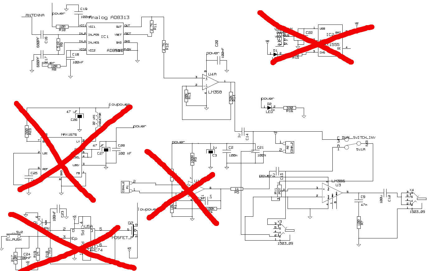 | omschrijving: Schema van een VHF/UHF EMI-sniffer met de AD8313 |