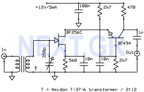 | omschrijving: Hoogfrequent voorversterker in cascode schakeling. |