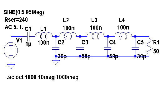 | omschrijving: Simulatie van het filter van een RDVV 300mW bug. Het gebruikte schema. |