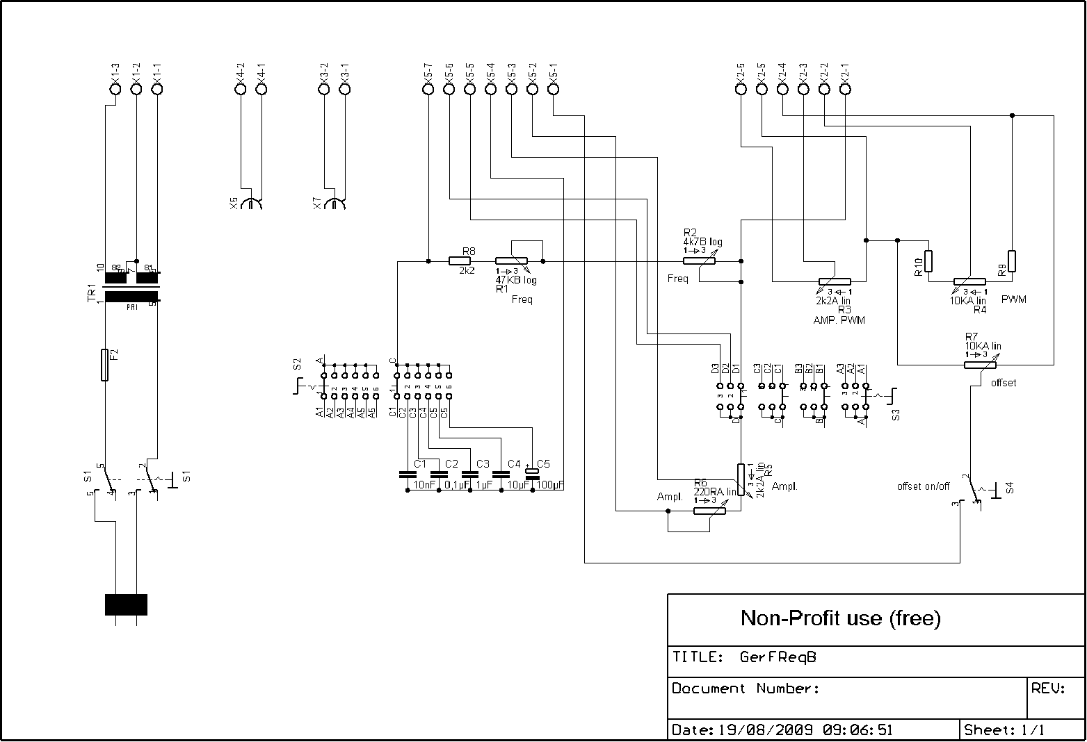 | omschrijving: Functie generator low cost 250Khz tot 0,1Hz. Schema 1/2 |