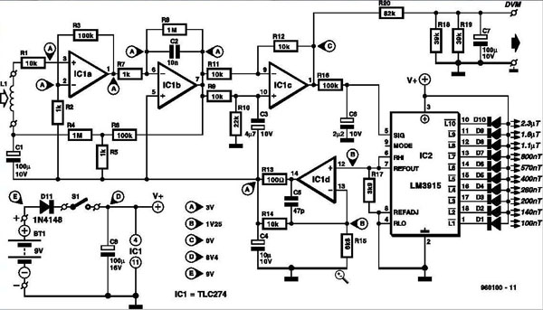 | omschrijving: Oorspronkelijk schema EMF-meter (kleine afbeelding) |