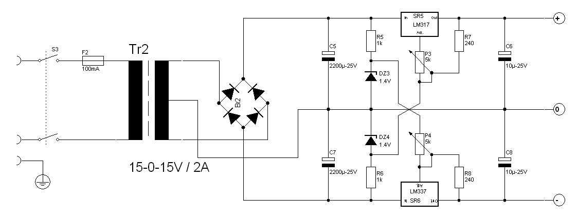 | omschrijving: symetrische regelbare voeding schema |