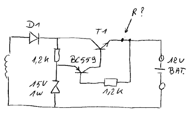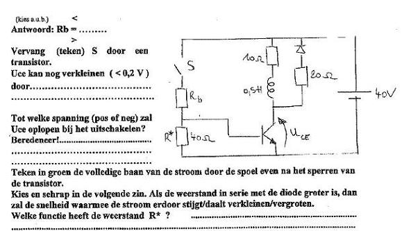 | omschrijving: berekenen van Rb zodat transistor in verzadiging staat (beta min = 20) |