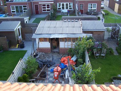 | omschrijving: ruimte tussen de schuren |