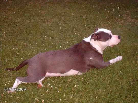 | omschrijving: Hefty liggend op gras |