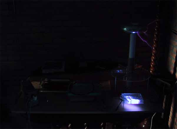 | omschrijving: Tesla trafo werkend |