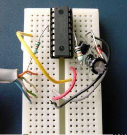 | omschrijving: Foto van PIC16F84A op breadboard. |