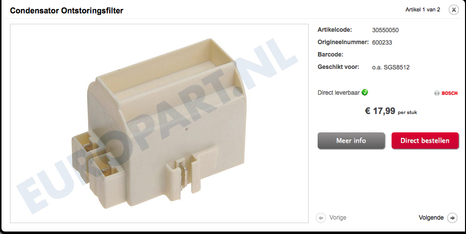 | omschrijving: ontstoorfilter vaatwasmachien bosch |