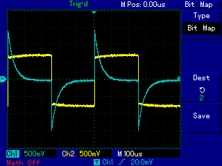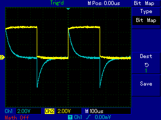 | omschrijving: differentiator C = 33n, R = 1k, @ 2kHz |