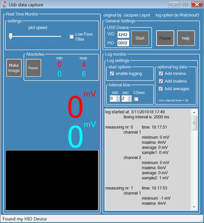 | omschrijving: ---http://yveslebrac.blogspot.com/2008/10/cheapest-dual-trace-scope-in-galaxy.html---mini USB-scope aangepast door watchout3, screenshot van de software voor de USB-logger, Beta2--- zie: http://www.circuitsonline.net/forum/view/84097/last voor meer info--- |